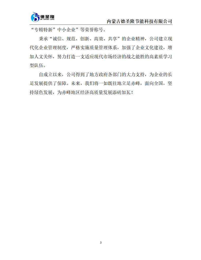 內蒙古德圣隆節(jié)能科技有限公司始終踐行“誠信立業(yè)、科技興企、質量為本、安全為天”的經營理念,堅持“以客戶為中心,以奮斗者為本”的宗旨,以“讓天更藍、水更綠,居住更安全,生活更溫暖”為使命,努力實現“打造百年品牌。